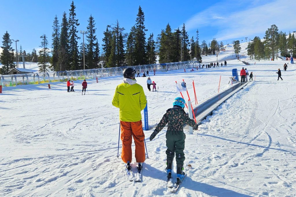 Nuorimmat lapset eivät olleet aiemmin lasketelleet, joten heille kaikki hisseistä lähtien oli uutta ja vähän jännittävääkin. Päivään mahtui myös turhautumista ja kiukkua kummankin ensikertalaisen osalta, mutta lopulta kumpikin löysi hienosti motivaation ja sisun, jolla harjoittelua jatkettiin. Voi sitä riemua kun homma alkoi sujua!