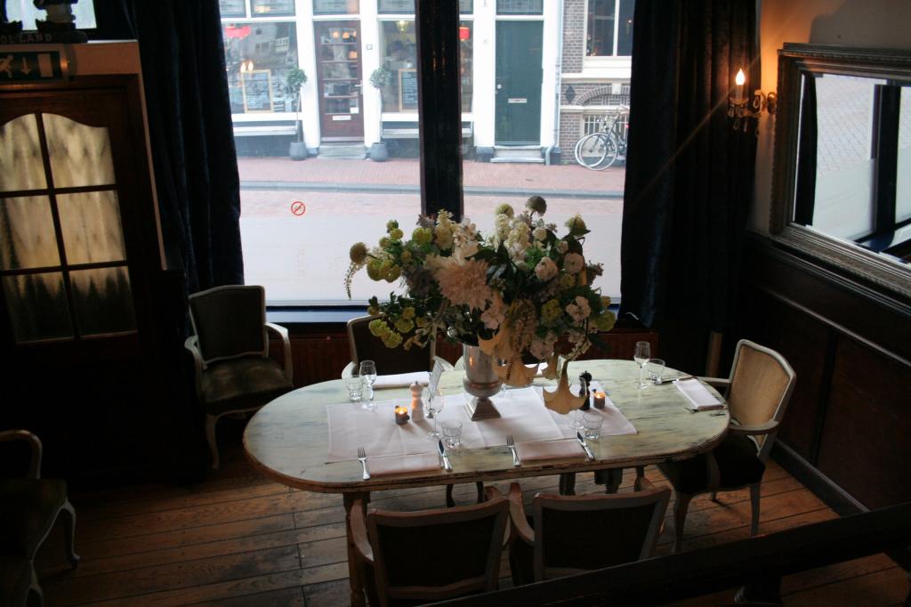 Minä sain kunnian tutkia Amsterdamin ravintolatarjontaa ja paneuduinkin pestiini antaumuksella. Kun törmäsin perinteistä hollantilaista ruokaa ranskalaisella twistillä tarjoilevaan ravintolaan, oli ensimmäisen illan ravintola päätetty. Greetje on nimetty ravintolan perustajan äidin mukaan ja siellä tarjoiltava ruoka on perinteistä, jopa hieman vanhanaikaista hollantilaista ruokaa. Annokset on tehty taidolla ja astetta fiinimmin. Tunnelma ravintolassa on kotoisa valkoisista pöytäliinoista huolimatta, ja sisustuksen söpöjä yksityiskohtia bongailee ilolla.