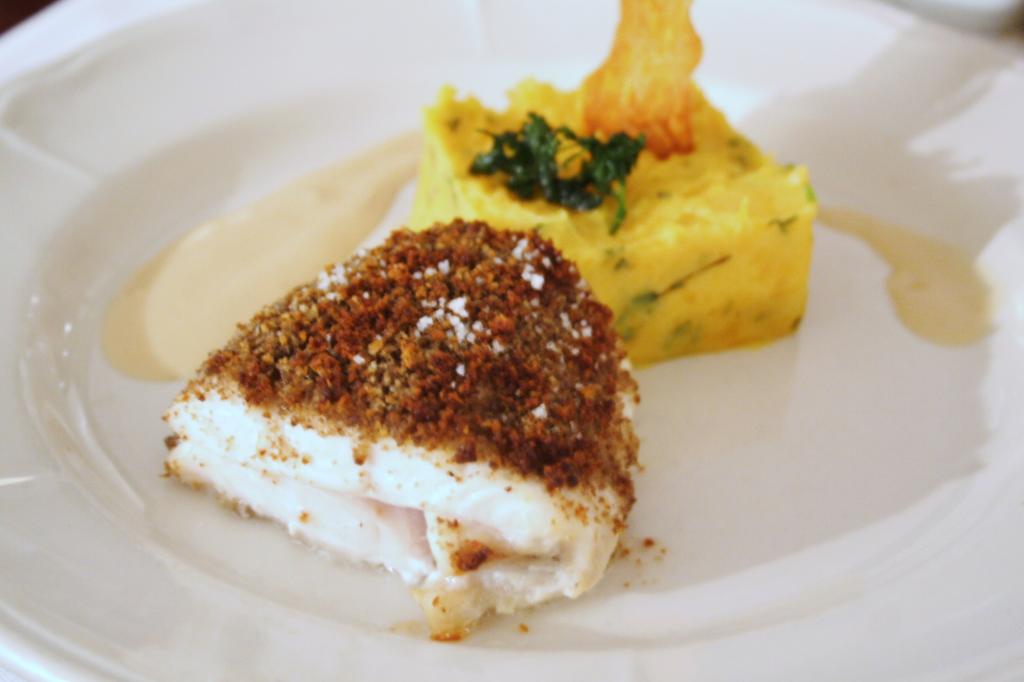 Ihanan alkuruokalajitelman jälkeen saimme eteemme mystisen haddockin, jonka muistin yhtäkkiä tarkoittavan turskaa. Ja voi miten perhanan hyvää turskaa se olikaan! Kannatti tehdä rohkeasti lähes sokkotilaus, sillä turska oli paljon parempaa kuin ankka. Ei ankassakaan mitään vikaa ollut, se vaan oli vähän tylsä valinta, vaikka ankannahan sisään taidolla jemmattu lisuke olikin hieno lisä annokseen.