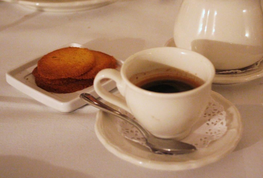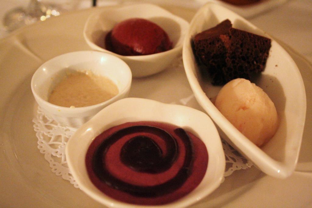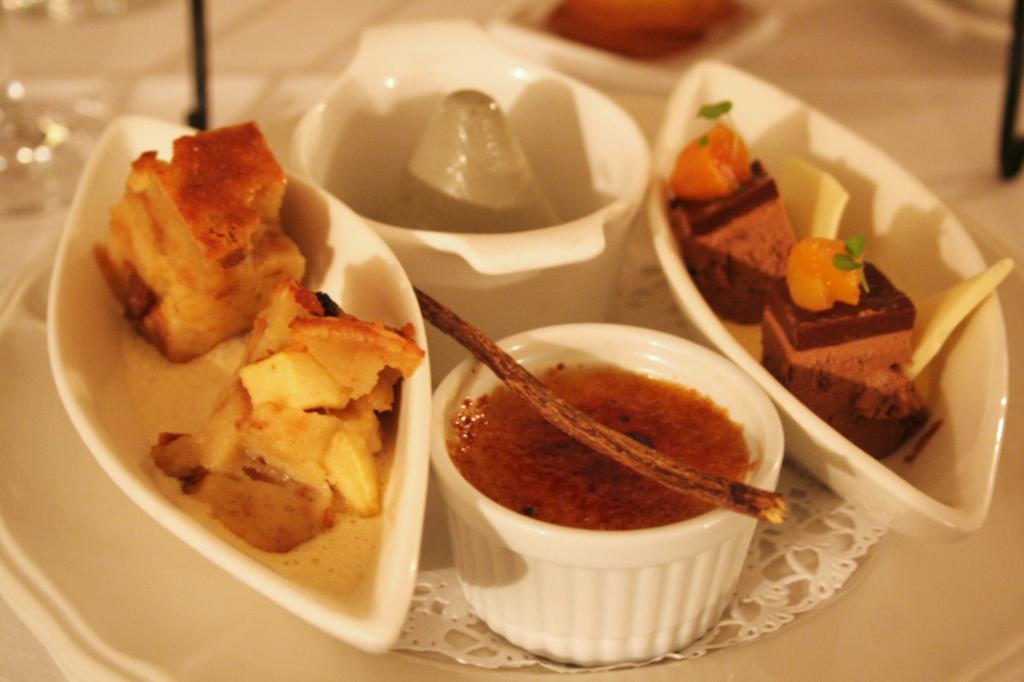 Tarjottimelta löytyi hieman yllättäen lakritsijäätelöä ja creme bruleeta, suloista pullapohjaista omenapaistosta, suussasulavia jäätelöitä ja mousseja, ihanaa suklaakakkua ja vaikka mitä muuta. Kylkeen otimme espressot, sillä väsyneiden matkustajien silmäluomet alkoivat jo painaa, emmekä halunneet vielä simahtaa.