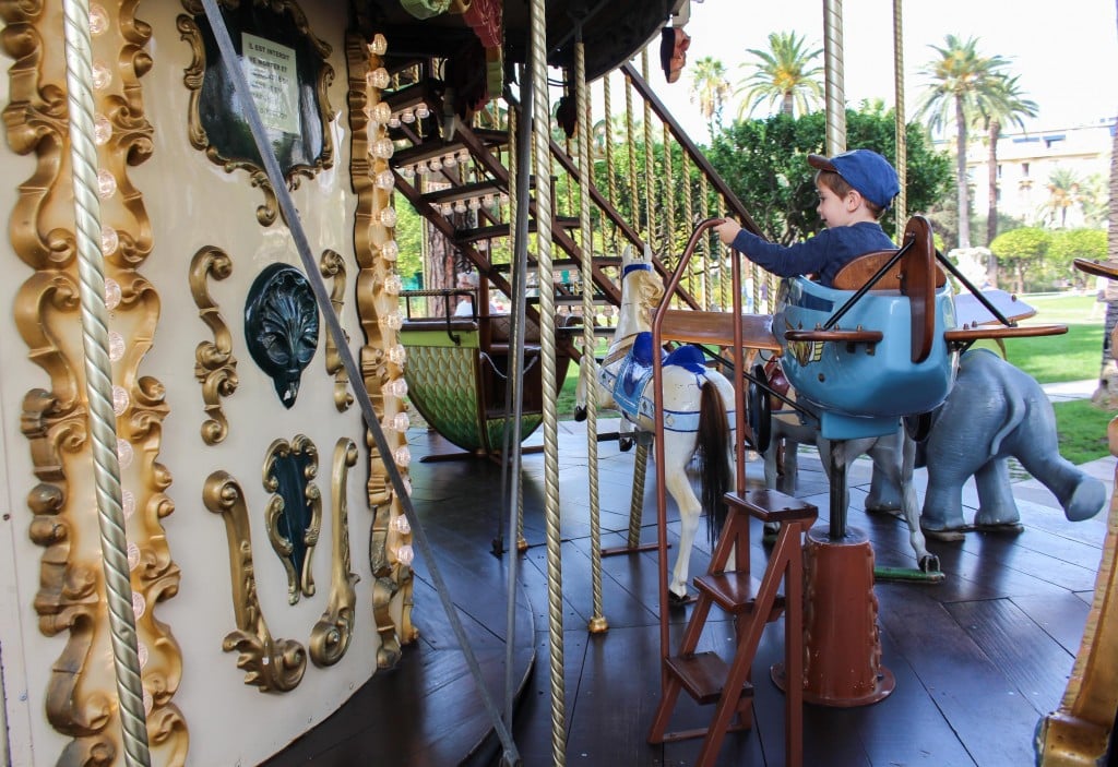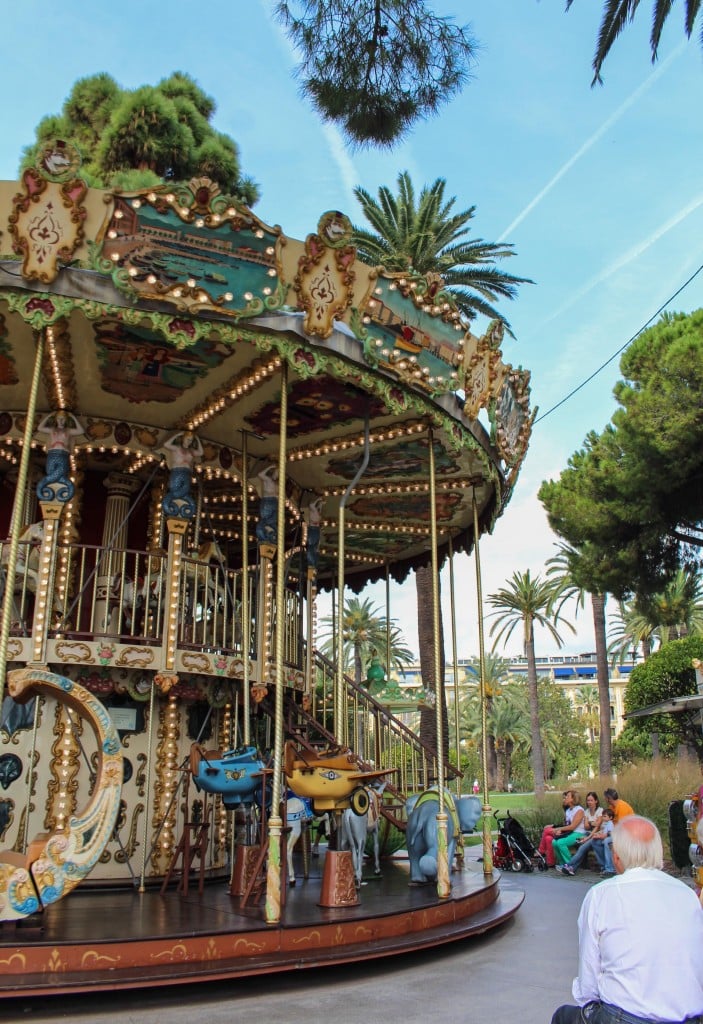 No mutta, ei hätä ole tämän näköinen, tuumimme ja päätimme korvata minijunan Promenade du Paillonin puiston päässä nököttävällä karusellilla. Kierros se on sekin ja kaupungissa. Kaupunkikierros siis, tavallaan. Ennen kaikkea se oli hauskaa. Kyllä kolmekymppinenkin saa olla karusellissa jos haluaa.