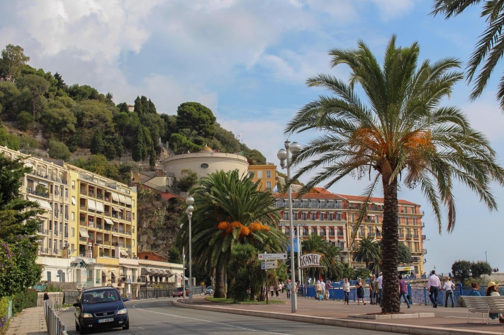 Koska minun päiväni osui ensimmäiselle lomapäivälle, halusin keksiä hauskan tavan tutustua Nizzaan. Minijuna it is! Katsoin jo kotona valmiiksi mistä kaupungilla kierroksen tekevä minijuna lähtee, paljonko se maksaa ja kauanko kierros kestää. Kävelytin ystäväni Nizzan rantabulevardille, jota pitkin kuljimme kohti vanhaakaupunkia. Täältä jostain rantabulevardilta junan pitäisi lähteä. Vaan eipä lähtenytkään.