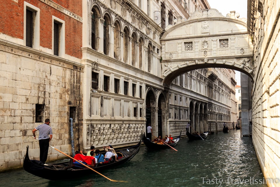 Gondoliajeluilla on kiinteät hinnat. Syksyllä 2018 puolen tunnin ajelun hinta oli 80 euroa ja 45 minuuttia 120 euroa per vene, ei siis onneksi per henkilö. Auringonlaskun aikaan on muutaman kympin kalliimpaa. Gondoliin mahtuu enimmillään 6 henkeä, mutta vaikka hinta tulee silloin halvemmaksi henkeä kohti, on mielestäni ainoa oikea tapa istua gondolissa kahdestaan oman rakkaansa kanssa. Muistakaa suudella sillan alla! Ainakin Rialton sillan alta kulkiessa suukko kuuluu asiaan.