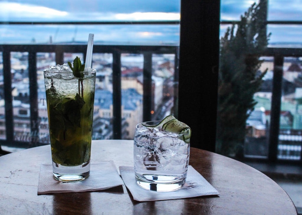 Hotelli Tornissa on peräti kolme eri baaria sekä tietenkin legendaarinen Hotelli Tornin ravintola. Alakerrasta olisi löytynyt irkkubaari O’Malleys sekä hienojen drinkkien luvattu paikka American Bar, mutta me körötimme hissillä 70 metrin korkeudessa sijaitsevaan Ateljee Bariin peräti kahdesti ja nautimme siellä aperitiivien lisäksi upeista maisemista.