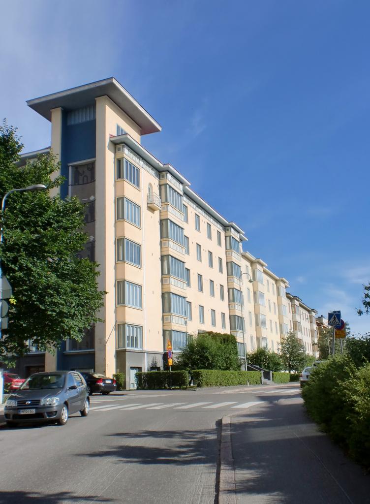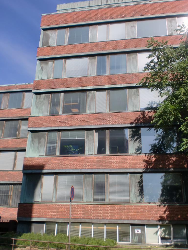 Nordenskiöldinkadulta löytyy Kelan päärakennus, joka on opaskirjamme mukaan yksi Alvar Aallon onnistuneimmista rakennuksista. Odotimme siis jotain todella hienoa, kunnes äiti tajusi, ettei herra Aallolta välttämättä kannatakaan odottaa mitään kovin upeaa. Ei ainakaan jos ottaa huomioon arkkitehdin muut superluomukset. Stora Enson sokeripalaksikin kutsuttu pääkonttori Katajanokalla lienee yksi Alvar Aallon tunnetuimmista töistä ja muuhun maisemaan täysin sopimaton möhkäle on kieltämättä melkoisen ruma. Kelan päärakennus on jos mahdollista vieläkin rumempi ja pyörimmekin oksettavan näköisen talon ympärillä ihmetellen, onko tämä todella etsimämme tärkeä nähtävyys. Ja olihan se. Sori vaan Alvar Aalto, mutta työsi eivät ole onnistuneet vakuuttamaan meikäturistia..