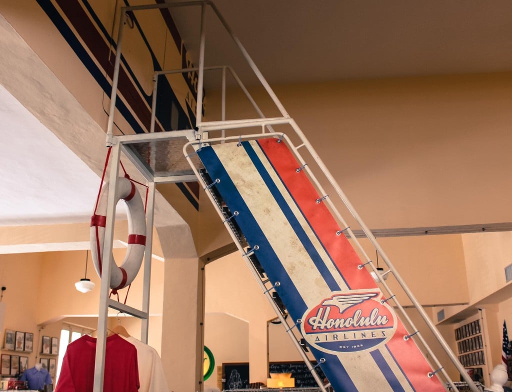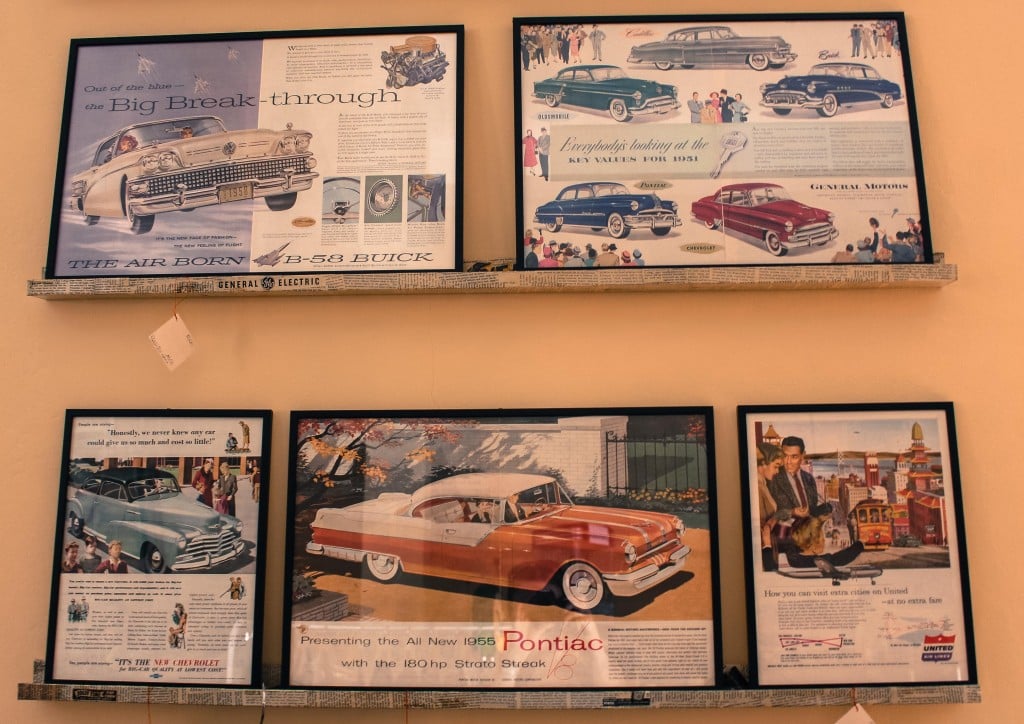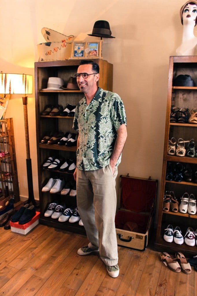 On myös tikapuut vanhanajan lentokoneeseen, upeita tauluja ja vaikka mitä hauskaa. Täällä näkee, että Angelo on todella omistautunut asialleen ja rakastaa 50-lukua. Mies kertoo meille intohimostaan ja yllyttää meitä kokeilemaan puodista löytyviä vaatteita. Osa meistä innostuu ideasta ja minä olen tietenkin yksi heistä. Pukuleikkejä, jee!