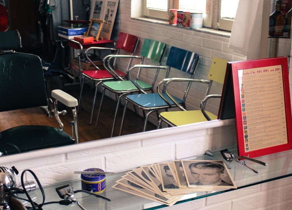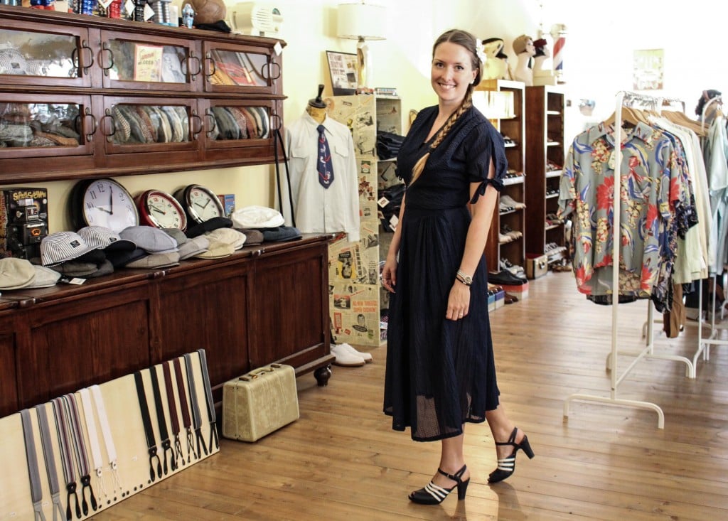 Putiikissa on iso kasa 50-luvun vaatteita, kenkiä ja asusteita, mutta myös paljon muuta hauskaa vanhaa tavaraa. Huoneen takaosassa on 50-luvun kampaamo vanhoine kampaamotuoleineen, peileineen, aikakauslehtineen ja kosmetiikkapurkkeineen.