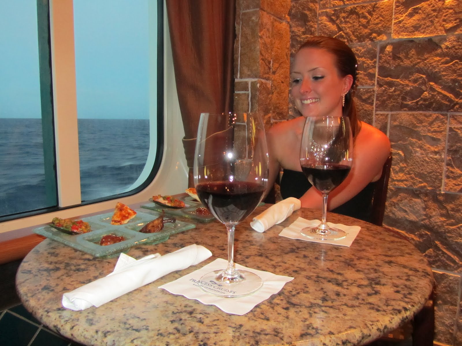 Koska olimme syöneet tukevan lounaan melko myöhään iltapäivällä, jätimme illallisbuffetissa vierailun suosiolla myöhempään iltaan. Alkuillasta kävimme kuitenkin viinibaarissa nauttimassa vakkaripöydässämme ikkunan luona lasilliset punaviiniä sekä muutaman pienen tapaksen. Auringonlaskun aikaan kiipesimme laivan ylimmälle kannelle katselemaan henkeäsalpaavia merimaisemia. Koimme kannella huikean elämyksen, kun ystävämme valas päätti tulla polskimaan laivamme viereen. Mikä tuuri että olimme juuri tuolloin kannella!
