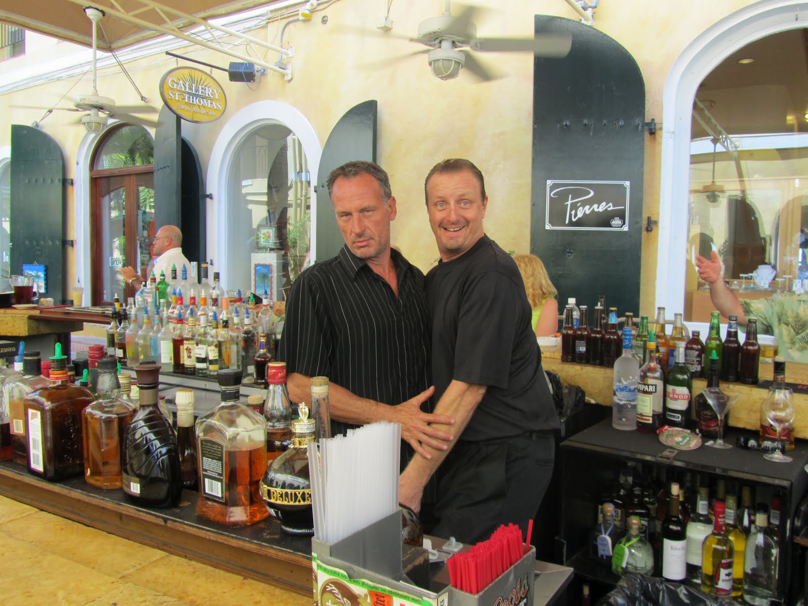 Tällaiset vilpertit olivat syyllisiä päiväkänneihimme. Ja me kun olimme menossa vain pienelle kokistauolle.. Ainiin, oikeanpuoleinen herra lähetti terveisiä kaikille suomalaisille naisille ja pyysi kertomaan mistä hänet löytää. Charlotte Amalien Palm Passagella sijaitsevaan baariin siis kaikki yhes koos!