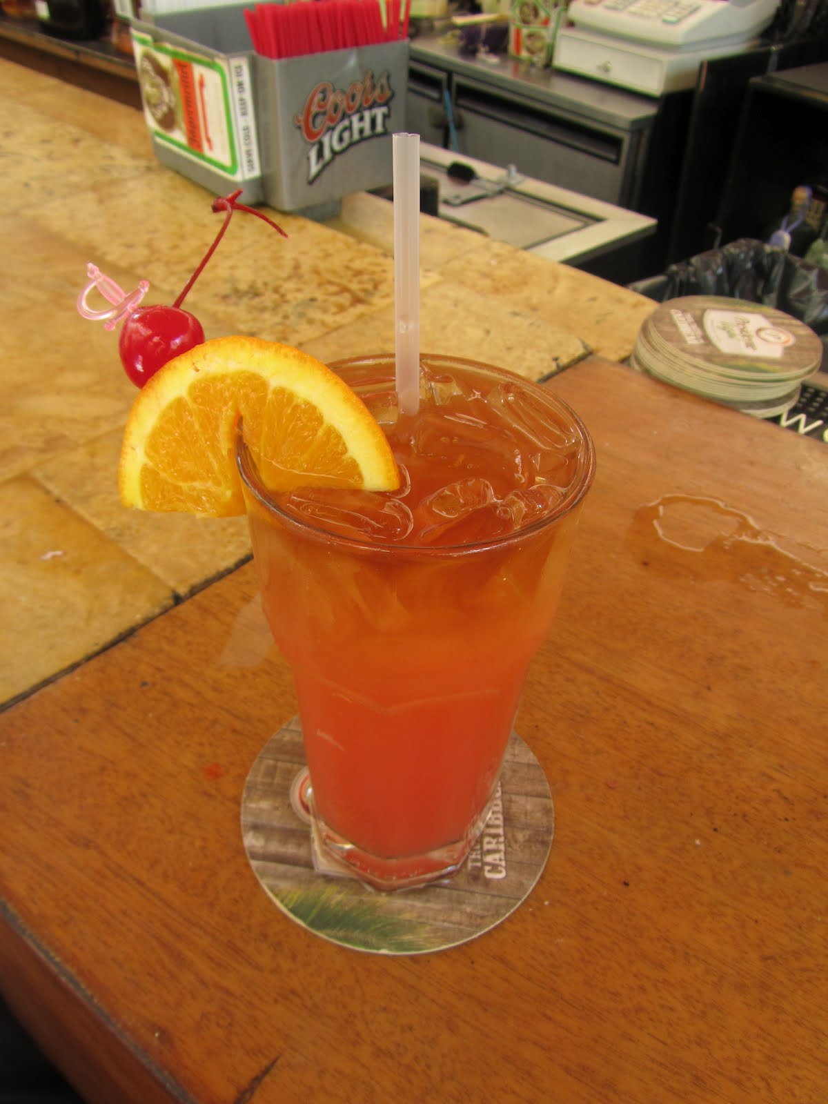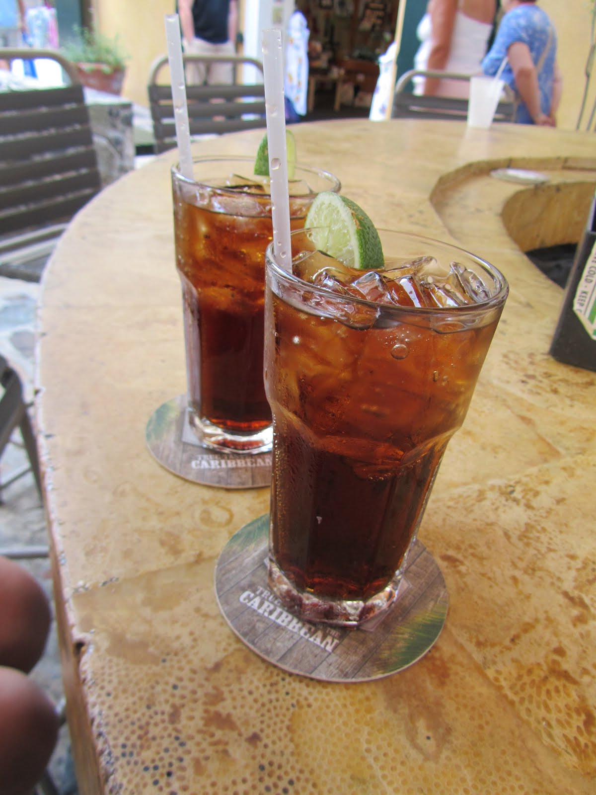 Päivä oli kuuma, joten hetken kaduilla kierreltyämme piipahdimme erään pikkukauppoja sisältävän sisäpihan keskelle väsättyyn mukavan viileään ulkoilmabaariin kokikselle. Herra baarimikko olisi ehdottomasti halunnut lorauttaa Coca Colaamme myös rommia, mutta suostui tarjoilemaan alkoholittoman version juoman koostumuksesta hetken väiteltyämme. Siemailimme limujamme hauskan ukon kertoessa vitsejä ja seuraavaan limuun päätimmekin ottaa hieman rommia. Baarimikon ”hieman” tosin tarkoitti sekoitussuhdetta fifty-fifty, joten rommikola aiheutti pienen hilpeän olon saarella seikkaileville turisteille.