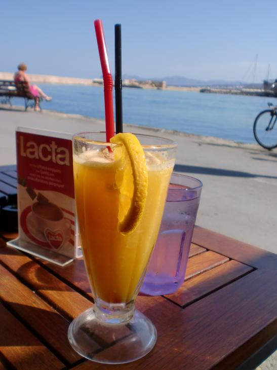 Ennen kuin suuntasimme takaisin laivaan vietimme Sante Caféssa tovin siemaillen appelsiinimehua, ihmetellen maisemia ja katsellen ohikulkevia ihmisiä. Kävimme vielä kurkkaamassa kauppahallin, mutta se oli niin täynnä ihmisiä, että kävelimme vain rakennuksen läpi ja nousimme bussiin, joka vei meidät takaisin Soudan satamassa odottavaan risteilyalukseemme.