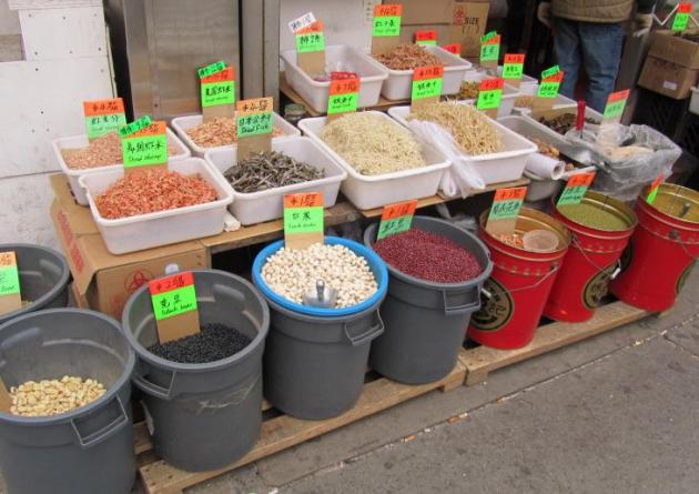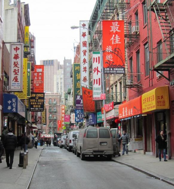 Kohta vastaamme alkoi kävellä yhä enemmän ja enemmän aasialaisia ihmisiä ja arvelimme olevamme lähellä määränpäätämme. Chinatown yllätti ainakin minut olemalla ihan oma maailmansa keskellä Manhattania. Jos olisin tupsahtanut paikalle tietämättä missä olen, olisin voinut luulla olevani New Yorkin sijaan Kiinassa. Kiertelimmekin hitaasti Chinatownin katuja, ihmettelimme ruokakojujen monipuolista tarjontaa ja pysähdyimme katsomaan hautajaiskulkuetta, jonka ensimmäinen auto oli kuorrutettu valtavalla kukkamerellä ja keskellä kukkia möllötti iso kasvokuva vainajasta.