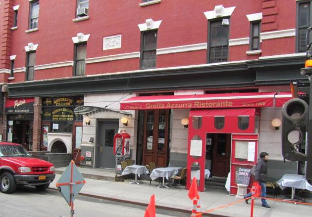 Jos löysimme Chinatownin helposti seuraamalla vastaantulevien aasialaisten virtaa ja suuntaamalla sinne, missä on eniten kylttejä, joita emme osaa lukea, oli Little Italy paljon vaikeampi löytää. Alue on niin pieni, oikeastaan vain yksi kadunpätkä keskellä Chinatownia, että tarvitsimme kartan apua löytääksemme pienen Italian keskellä Manhattania. Lopulta löysimme vaatimattoman kadun, jossa oli rivi italialaisia kuppiloita ja päräytimme sisään hauskimman näköiseen niistä. Tilasimme lasit punaviiniä, ja saimme isot piripintaan täytetyt viinilasit, joista piti hörppäistä osa pois ennen kuin sen uskalsi nostaa käteen. Näiden viinilasillisten kanssa kuluisi hieman enemmän aikaa, mutta mikäs tässä on lomalaisen hengaillessa.