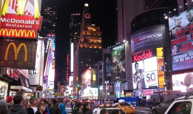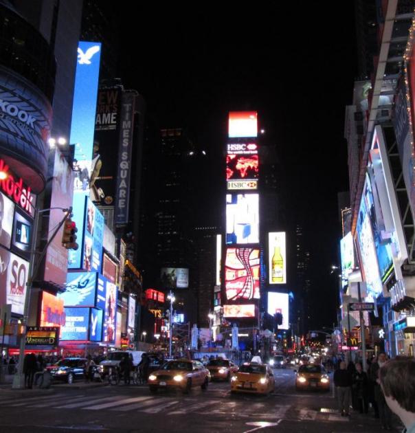 Syömisen jälkeen lähdimme sulattelemaan pizzoja kävellen käsi kädessä pimentyneessä kaupungissa, joka ei oikeastaan ollut kovin pimeä, sillä joka paikassa loisti erilaisia valoja. Times Square oli luonnollisesti kaikista valoisin paikka iltamyöhään ja siellä tökötimmekin tovin ihmettelemässä kaikkia niitä valoja ja aukiolla vaeltavaa väenpaljoutta.