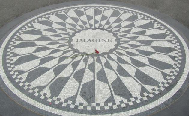 Imagine-muistomerkki on tehty John Lennonin muistoksi ja sitä koristellaan usein kukilla ja kynttilöillä. Meidän reissun aikana muistomerkillä oli tosin vain yksi vaivainen kukka.