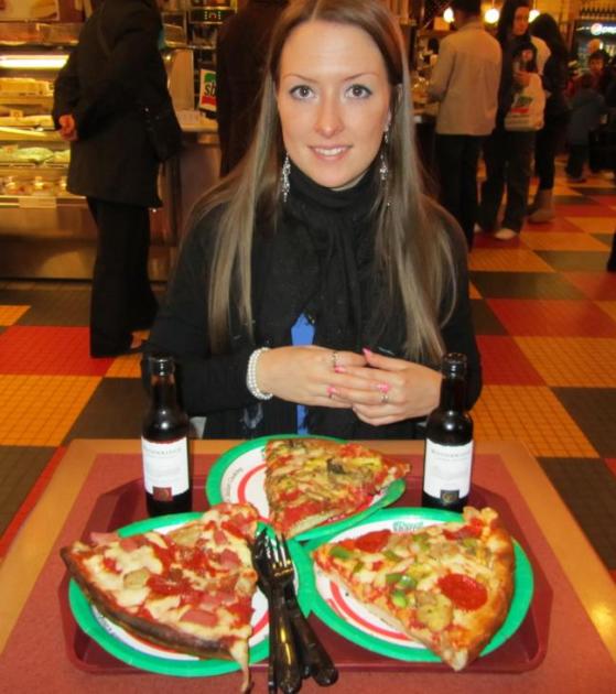 Ennen illallista meidän oli määrä laittaa vielä kamat kasaan, sillä aamuvarhaisella oli lähtö La Guardian lentokentälle ja seuraavaan kohteeseen. Kun laukut oli pakattu ja ulkona pimeää, lähdimme etsimään pizzapaikkaa, mikä olikin helpommin sanottu kuin tehty siinä osassa Manhattania, jolla hotellimme sijaitsi. Lopulta löysimme pikaruokapaikan näköisen mestan, josta ostimme muutaman pizzaslicen ja pikkupullot punkkua. Tämä illallinen saisi nyt kelvata.