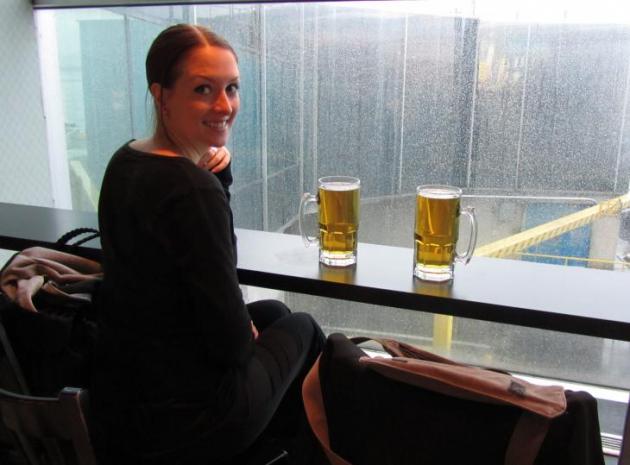 Perinteiset lähtökaljat oli hörpättävä tälläkin kentällä, vaikka perillä Fort Lauderdalessa Henkka istuisikin auton rattiin ja ajaisi meidät avoautolla Miami Beachille. Herra itse ei tätä muistanut tilatessaan meille isot tuopit, mutta onneksi alkomaholi ehti haihtua lentomatkan aikana.