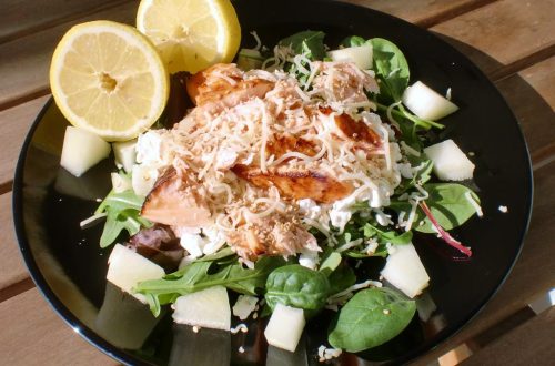 Mausta salaatti suolalla ja halutessasi myös pippurilla. Tähtää suolapurkilla etenkin kananmunien ja avokadojen päälle. Avokadojen päälle voit pirskotella myös sitruuna- tai limemehua. Tämä estää avokadon tummumisen ennen aikojaan ja sitrushedelmä tuo myös kivaa lisämakua salaattiin.