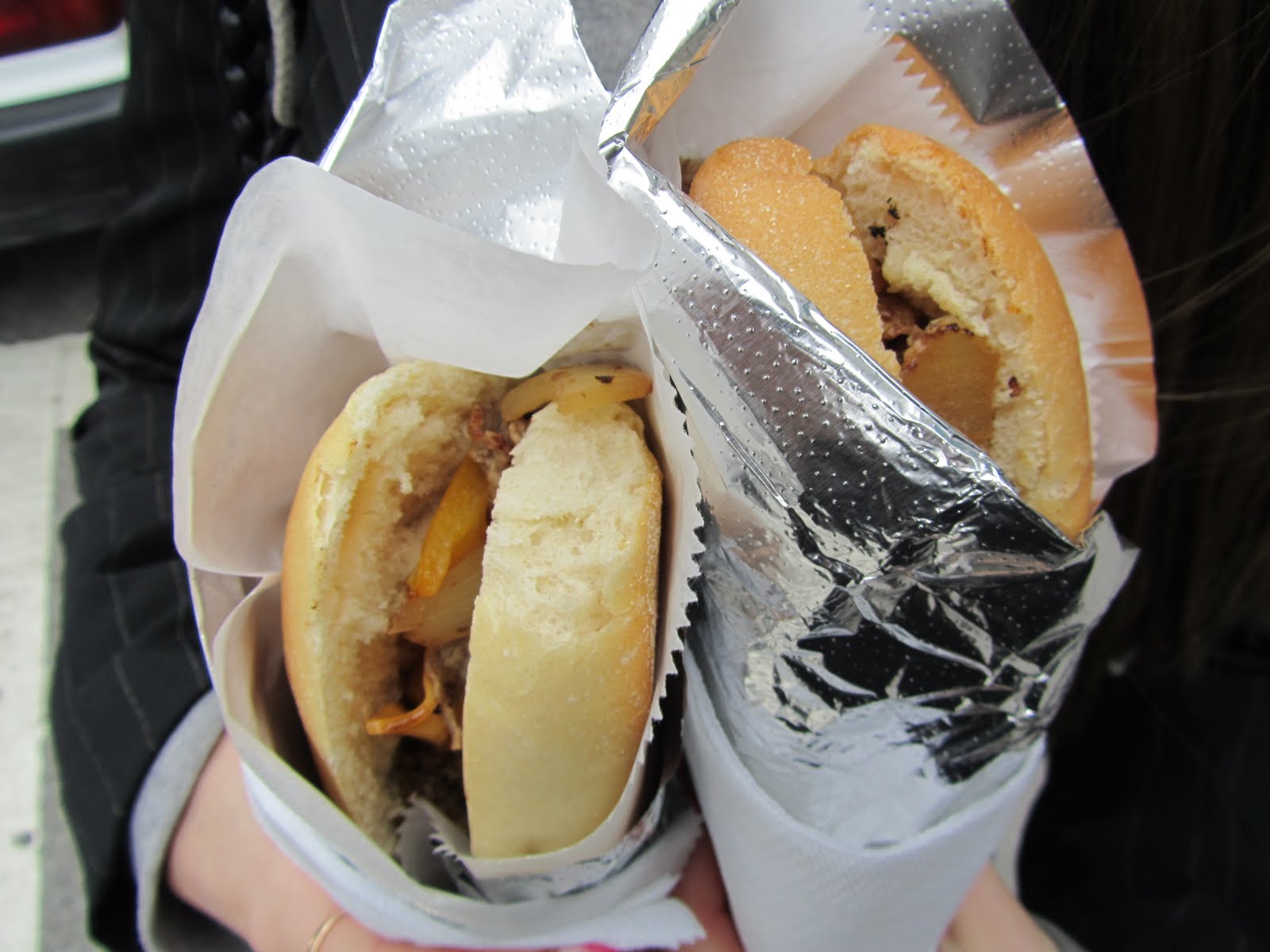 Joka kadun kulmassa oli myös hodarikoju, josta oli toki pakko saada suuhunsa perinteinen hodari sinapilla ja ketsupilla. Hyvää oli, mutta vielä parempaa olivat Philly Cheese Steak -nimiset hodarin sukulaiset, joita sai samaisista kojuista kuin perinteisiä kuumia koiriakin. Phillyt vetelimme ensimmäisen kerran naamariimme Central Parkissa kevään ensimmäisellä piknikillämme. Maistui. Rabies-oravallekin olisi varmaan maistunut, mutta sitä ei saanut syöttää vaikka se olikin ihan kesy.