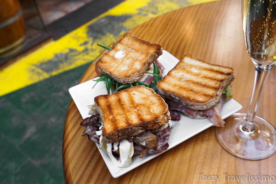 Hauska uusi tuttavuus, johon törmäsimme oikeastaan vähän vahingossa olivat montaditos-nimiset täytetyt pienet leivät, joilla herkuttelimme Vino y Mas -ravintolan terassilla. Tilasimme kolme erilaista leipää pikkunälkään ja olimme niiden jälkeen aivan täynnä. Kuvassa olevat leivät ovat gluteenittomia, joita en olisi ikinä arvannut sellaisiksi, jos en olisi tiennyt.