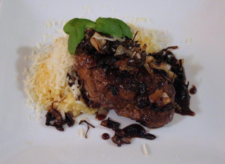 Ankanrinta, appelsiinirisotto ja balsamicosiirappi